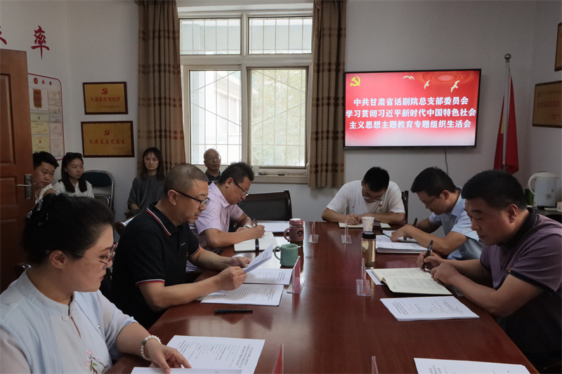 根據(jù)集團(tuán)黨委學(xué)習(xí)貫徹習(xí)近平新時代中國特色社會主義思想主題教育領(lǐng)導(dǎo)小組安排部署,8月31日下午,甘肅演藝集團(tuán)話劇院(甘肅兒童劇院)黨總支組織召開主題教育專題組織生活會。集團(tuán)黨委委員、副總經(jīng)理、財務(wù)總監(jiān)張國偉及督導(dǎo)組一行到會指導(dǎo)。話劇院領(lǐng)導(dǎo)班子成員及各部門負(fù)責(zé)人、黨員參加會議,會議由黨總支書記、院長張沛主持。