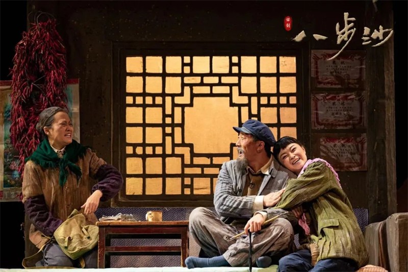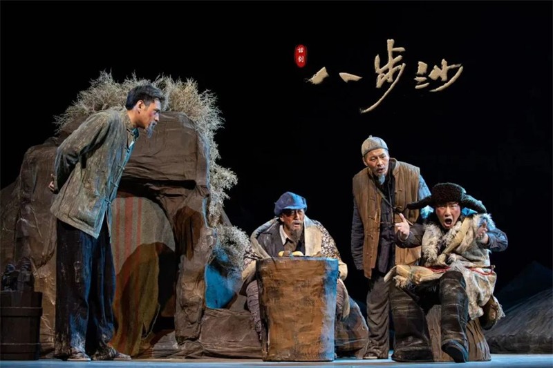 話劇《八步沙》根據(jù)中宣部命名的“時(shí)代楷?!焙汀白蠲缞^斗者”榮譽(yù)稱號(hào)獲得集體——甘肅武威古浪八步沙“六老漢”三代人治沙造林先進(jìn)群體真實(shí)事跡創(chuàng)作,以舞臺(tái)藝術(shù)生動(dòng)再現(xiàn)了八步沙“六老漢”治沙造林的感人事跡。話劇《八步沙》充分發(fā)揮話劇藝術(shù)直面現(xiàn)實(shí)生活書寫時(shí)代風(fēng)采的優(yōu)勢(shì),既有生動(dòng)感人的故事,又有詼諧幽默的笑點(diǎn),更不乏令人感動(dòng)的“淚點(diǎn)”,生動(dòng)地表現(xiàn)了“六老漢”創(chuàng)造幸福人生,追尋探究人生價(jià)值的真諦。