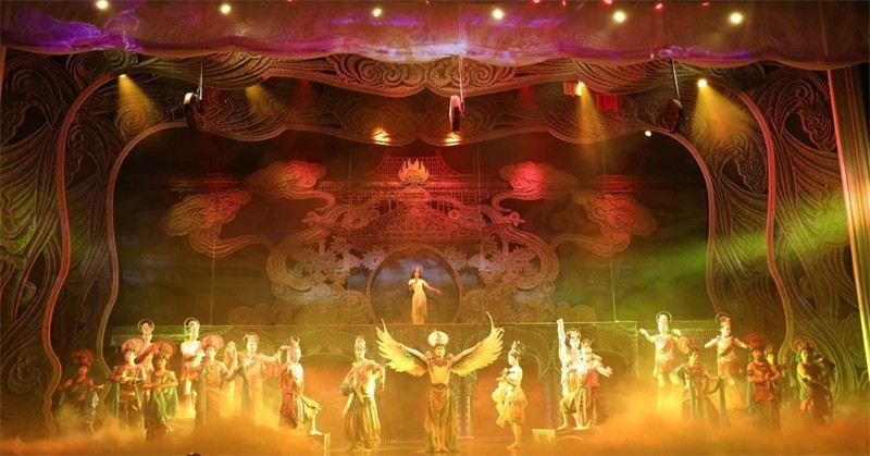 “樂動敦煌-文旅產(chǎn)業(yè)綜合體”項目是集歷史文化、數(shù)字創(chuàng)意、沉浸演藝、特色市集、藝術(shù)文創(chuàng)為一體的敦煌文化一站式沉浸體驗地。主劇目《樂動敦煌》通過活化敦煌古樂器、古樂譜的研發(fā)成果,配合多種科技手段,結(jié)合真人演藝,再現(xiàn)敦煌壁畫中樂、舞、詩、畫的璀璨繁盛,被譽為莫高窟“活”的第736窟。劇場總面積達8000平方米,為全球首座洞窟式沉浸體驗劇場,是現(xiàn)代科技和敦煌藝術(shù)的完美結(jié)合。延展劇目上元文化建成的大型絲路非遺文化互動街區(qū)上元市集,展現(xiàn)出“劇”“藝”“食”“趣”四大核心亮點。上元安康踏歌臺、上元戲樓常年上演特色演出。上元雅集匯聚樂動敦煌IP衍生品、藝術(shù)文創(chuàng)及國潮好物,打造非遺技藝展示與手作體驗場景,展現(xiàn)古今創(chuàng)意融合之美。