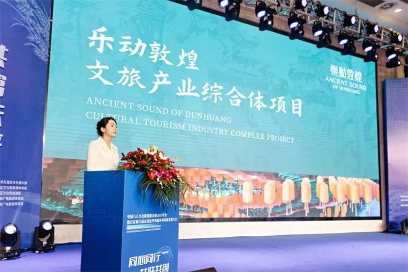 1月10日,樂動敦煌公司在大會對“樂動敦煌-文旅產(chǎn)業(yè)綜合體”項(xiàng)目進(jìn)行推介,并攜《樂動敦煌》劇目精彩片段驚艷亮相。盛會現(xiàn)場,樂動敦煌公司相關(guān)負(fù)責(zé)人圍繞“項(xiàng)目背景、劇目亮點(diǎn)、特色產(chǎn)品、品牌聲量、規(guī)劃布局”等,對樂動敦煌-文旅產(chǎn)業(yè)綜合體項(xiàng)目進(jìn)行重點(diǎn)推介。
