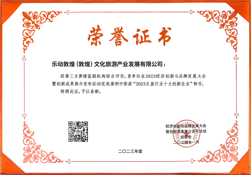 【文旅喜訊】樂動(dòng)敦煌在2023經(jīng)濟(jì)創(chuàng)新與品牌發(fā)展峰會(huì)暨創(chuàng)新成果推介發(fā)布活動(dòng)喜訊頻傳