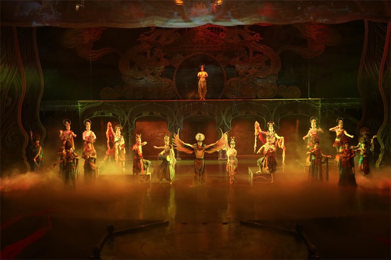 “樂動(dòng)敦煌-文旅產(chǎn)業(yè)綜合體”項(xiàng)目是集歷史文化、數(shù)字創(chuàng)意、沉浸演藝、特色市集、藝術(shù)文創(chuàng)為一體的敦煌文化一站式沉浸體驗(yàn)地。主劇目《樂動(dòng)敦煌》通過活化敦煌古樂器、古樂譜的研發(fā)成果,配合多種科技手段,結(jié)合真人演藝,再現(xiàn)敦煌壁畫中樂、舞、詩、畫的璀璨繁盛,被譽(yù)為莫高窟“活”的第736窟。劇場總面積達(dá)8000平方米,為全球首座洞窟式沉浸體驗(yàn)劇場,是現(xiàn)代科技和敦煌藝術(shù)的完美結(jié)合。