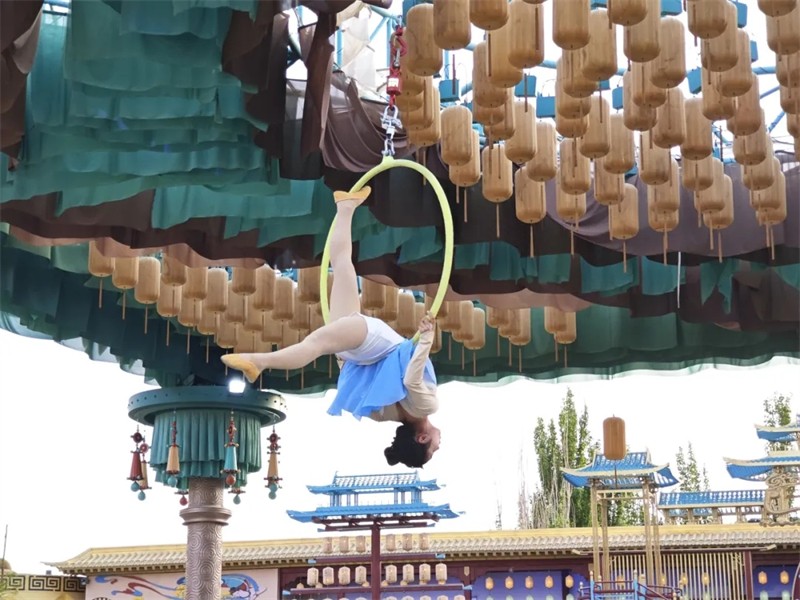 敦煌千面(變臉)、關(guān)外刀客(硬氣功)、三仙歸洞(雜技手技)、上元禮佛(柔術(shù))、敦煌飛天(綢吊)、沙洲茶藝(茶壺)、吐蕃達(dá)瓦孜(新疆鋼絲)、敦煌環(huán)舞(滾環(huán))、上元疊案(高椅倒立)、上元扯鈴(花式空竹)、靈鼠獻(xiàn)藝(訓(xùn)鼠)、花樣摔跤(二鬼摔跤)、上元頂技(十樣雜耍)、火魔方、大漠弄丸(手技)、外藩獻(xiàn)彩(黑人表演)、西域共舞(白人舞蹈)、舞動上元(舞蹈互動)。