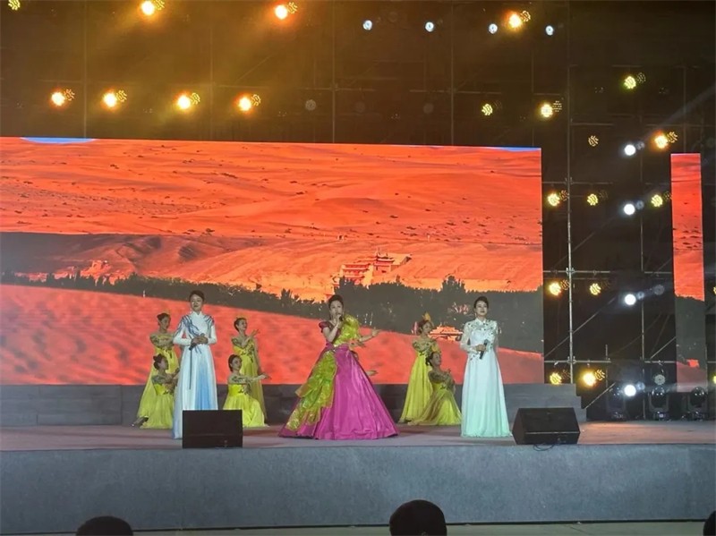 敦煌藝術(shù)團(tuán)為觀眾獻(xiàn)上了歌舞、快板、小品、雜技、魔術(shù)等形式多樣、內(nèi)容豐富的精彩表演,贏得了觀眾們的陣陣掌聲和歡呼聲,現(xiàn)場(chǎng)氣氛熱烈。大家時(shí)而隨著音樂的節(jié)奏輕輕擺動(dòng),時(shí)而因快板和小品節(jié)目捧腹大笑,時(shí)而被驚險(xiǎn)雜技和奇幻的魔術(shù)節(jié)目鎖住目光,生怕錯(cuò)過任何一個(gè)精彩瞬間。