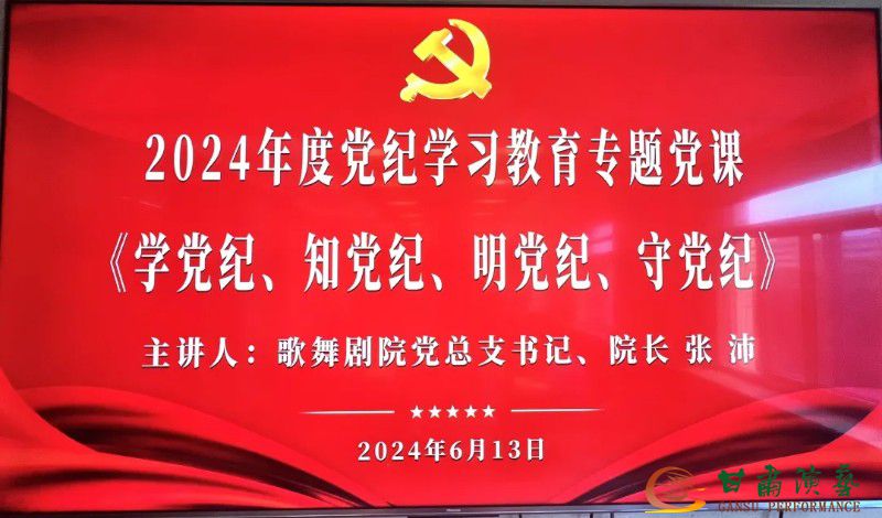 根據(jù)甘肅演藝集團(tuán)歌舞劇院黨總支黨紀(jì)學(xué)習(xí)教育安排部署,為幫助全院黨員干部深刻理解《中國(guó)共產(chǎn)黨紀(jì)律處分條例》,6月13日下午,劇院組織開(kāi)展黨總支書(shū)記講黨紀(jì)學(xué)習(xí)教育專(zhuān)題黨課暨讀書(shū)班第三次集中學(xué)習(xí),院班子成員、中層干部、黨員代表參加本次活動(dòng)。