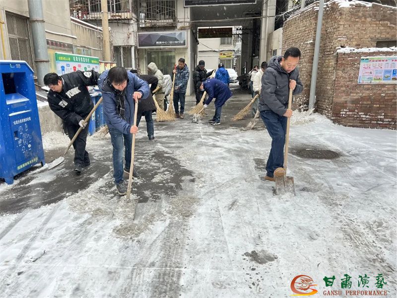大雪紛飛至,瑞景入畫(huà)來(lái),一夜間大地銀裝素裹。為保障院區(qū)職工和居民群眾正常辦公秩序和出行安全,凝聚黨員隊(duì)伍戰(zhàn)斗力,提升黨員服務(wù)群眾的意識(shí)。12月10日,甘肅演藝集團(tuán)舞美中心黨支部開(kāi)展“凝心聚力 除雪護(hù)行”主題黨日活動(dòng)。中心黨員干部以雪為令,主動(dòng)投入掃雪除冰行動(dòng),在班子成員的帶領(lǐng)下迅速對(duì)中心院內(nèi)及院外人行道路積雪進(jìn)行徹底清理,充分發(fā)揮黨員的先鋒模范作用和基層黨組織戰(zhàn)斗堡壘作用。