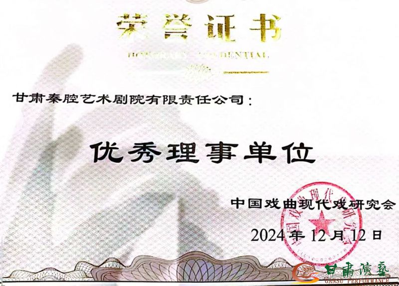 中國戲曲現(xiàn)代戲研究會傳來喜訊,甘肅演藝集團(tuán)秦腔藝術(shù)劇院憑借其在傳統(tǒng)及現(xiàn)代藝術(shù)領(lǐng)域做出的卓越貢獻(xiàn),榮獲2024年度“優(yōu)秀理事單位”稱號。