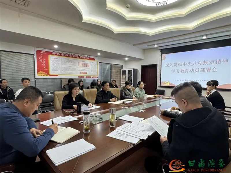 3月26日下午,甘肅演藝集團(tuán)秦腔藝術(shù)劇院召開深入貫徹中央八項規(guī)定精神學(xué)習(xí)教育動員部署會。深入學(xué)習(xí)貫徹習(xí)近平總書記重要講話和重要指示精神,研究部署學(xué)習(xí)教育工作。劇院黨總支書記、藝術(shù)總監(jiān)蘇鳳麗主持會議并作動員部署。甘肅演藝集團(tuán)副總經(jīng)理、秦腔藝術(shù)劇院院長馬勇,劇院其他班子成員,在蘭黨員、中層干部參加會議。