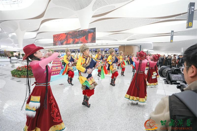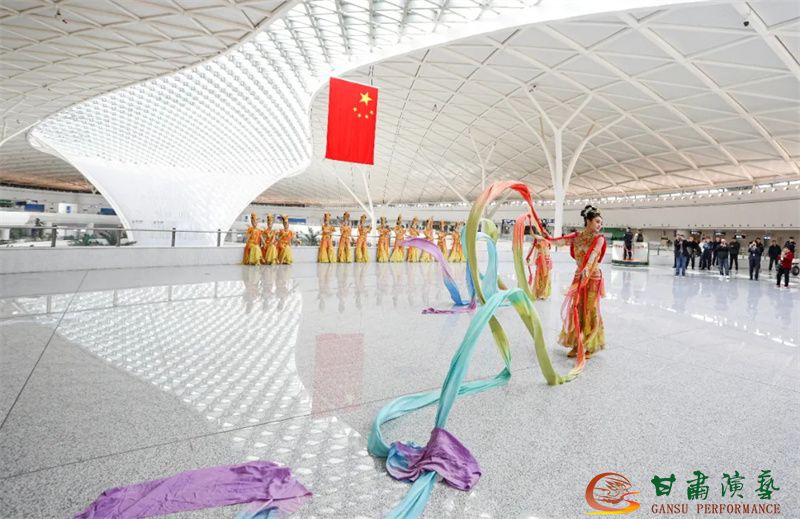 3月20日,蘭州中川國(guó)際機(jī)場(chǎng)T3航站樓正式投入運(yùn)營(yíng)。值此歷史性時(shí)刻,由甘肅省文化和旅游廳主辦,以甘肅演藝集團(tuán)歌舞劇院為班底聯(lián)合甘肅省歌劇院、甘肅省民族歌舞團(tuán)等多家藝術(shù)院團(tuán)眾多藝術(shù)家聯(lián)合打造的“跟著藝術(shù)游甘肅”快閃與展演活動(dòng)在航站樓內(nèi)盛大舉行,共同為八方旅客呈現(xiàn)了敦煌文化與甘肅多民族文化相融合的多彩地域文化盛宴,以藝術(shù)之名致敬T3航站樓啟航新程。