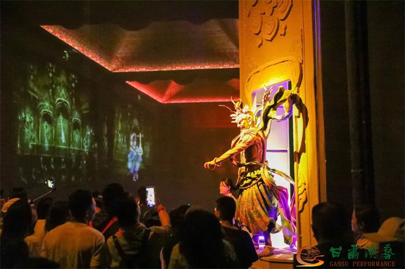 “沉浸式的體驗(yàn),會(huì)動(dòng)的壁畫”。舞姿翩躚的伎樂(lè)師,讓游客朋友近距離感受敦煌樂(lè)舞文化的魅力。