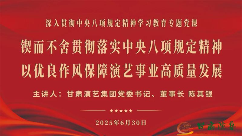 6月30日,甘肅演藝集團黨委書記、董事長陳其銀以“鍥而不舍貫徹落實中央八項規(guī)定精神,以優(yōu)良作風保障演藝事業(yè)高質量發(fā)展”為主題,為甘肅演藝集團歌舞劇院班子成員、中層干部、全體黨員及發(fā)展對象上了一堂內涵深刻、針對性強的“作風建設必修課”。