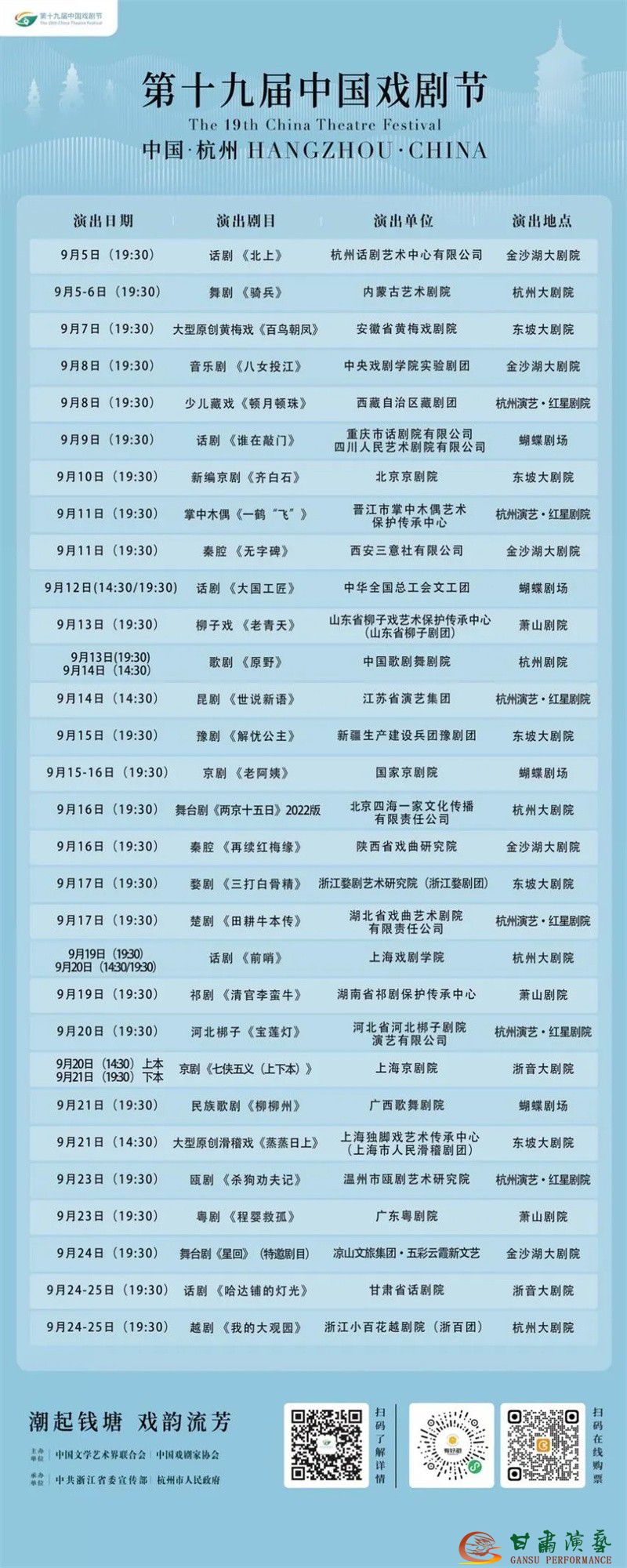 2025年9月5日至25日,由中國文學(xué)藝術(shù)界聯(lián)合會、中國戲劇家協(xié)會主辦,浙江省委宣傳部、杭州市人民政府承辦的 “第十九屆中國戲劇節(jié)”將在杭州璀璨啟幕!