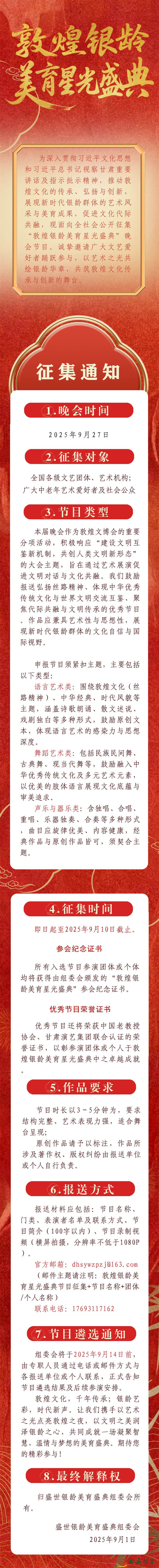 敦煌銀齡美育星光盛典晚會節(jié)目征集通知