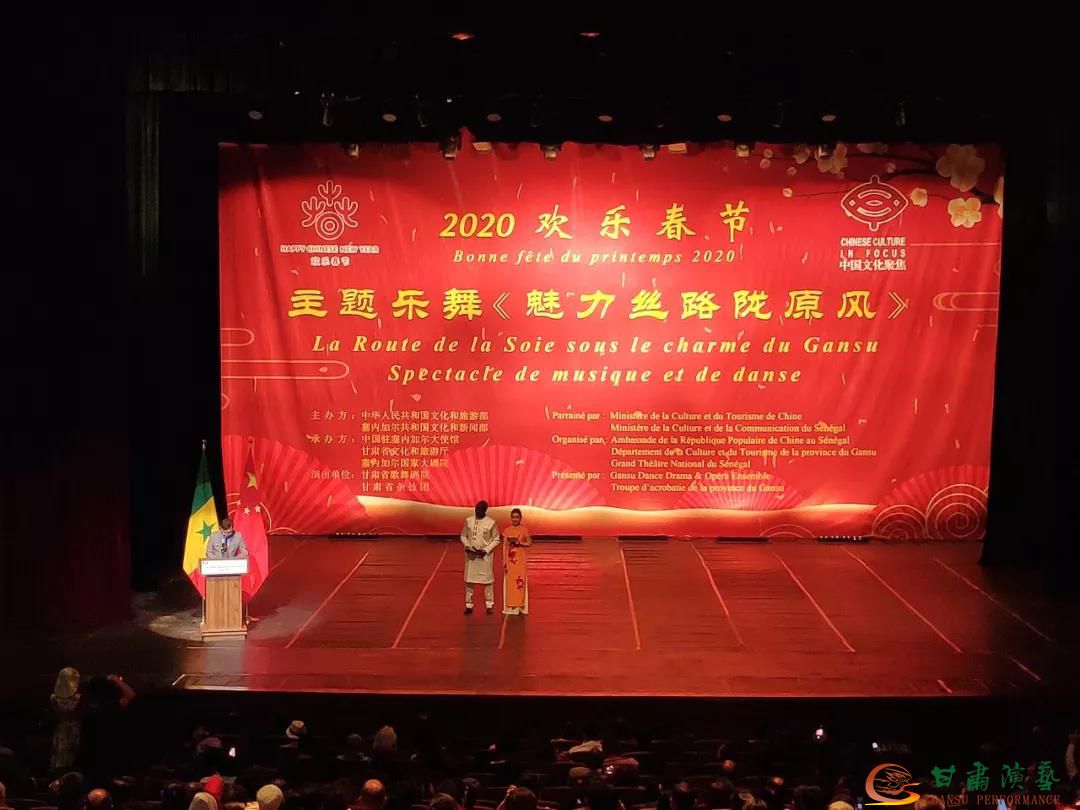 由中國文化和旅游部、塞內(nèi)加爾文化和新聞部共同主辦,中國駐塞內(nèi)加爾大使館與甘肅省文化和旅游廳共同承辦的2020年塞內(nèi)加爾“歡樂春節(jié)”系列活動,在塞內(nèi)加爾首都達喀爾連續(xù)演出3場,拉開了甘肅藝術(shù)團赴非洲塞內(nèi)加爾、岡比亞、塞舌爾3國“歡樂春節(jié)”系列演出活動的序幕。