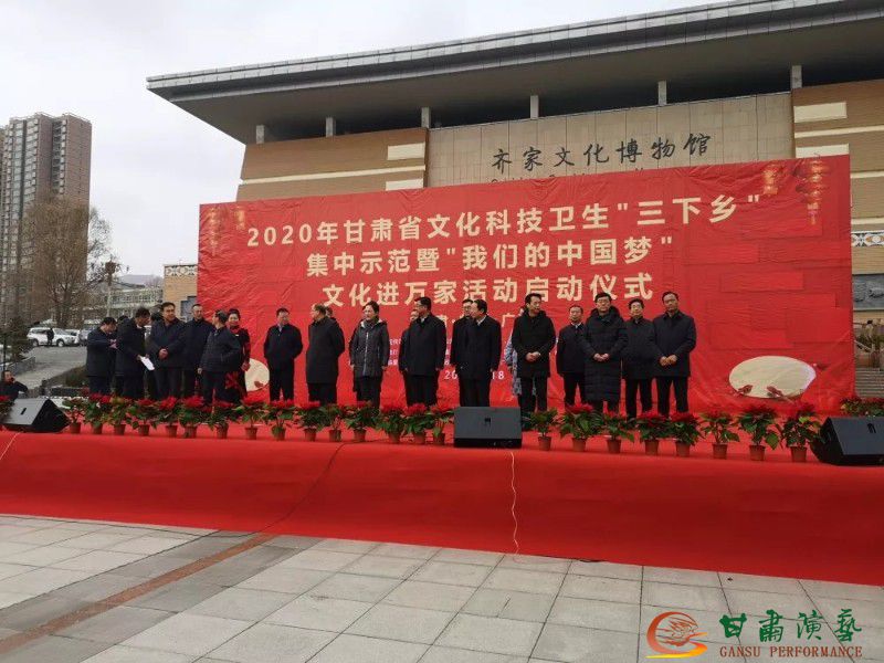 1月18日,在新春佳節(jié)來(lái)臨之際,由甘肅省委宣傳部、省文明辦、省發(fā)展改革委等15個(gè)省直部門(mén)聯(lián)合舉辦的2020年甘肅省文化、科技、衛(wèi)生“三下鄉(xiāng)”集中示范暨“我們的中國(guó)夢(mèng)——文化進(jìn)萬(wàn)家”活動(dòng),在臨夏州廣河縣啟動(dòng)。甘肅省委常委、宣傳部部長(zhǎng)陳青出席儀式并宣布活動(dòng)啟動(dòng)。
