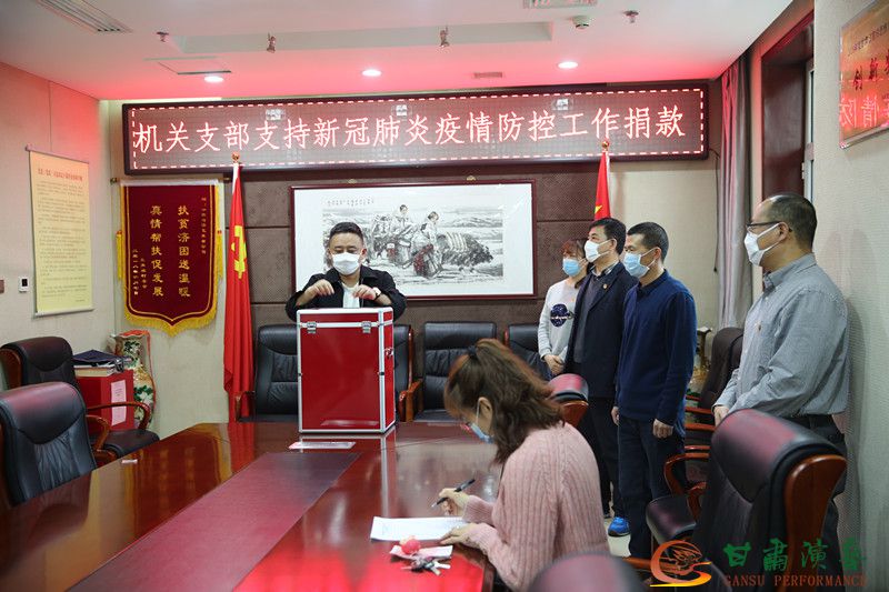 響應(yīng)黨中央號召,甘肅演藝集團(tuán)機(jī)關(guān)支部即刻行動,及時(shí)部署推進(jìn)。集團(tuán)機(jī)關(guān)支部全體黨員積極響應(yīng)、踴躍捐款,支持疫情防控工作。強(qiáng)烈的捐款意愿和積極的捐款行動,充分體現(xiàn)了甘肅演藝集團(tuán)機(jī)關(guān)支部廣大黨員響應(yīng)黨中央號召,堅(jiān)決打贏疫情防控人民戰(zhàn)爭、總體戰(zhàn)、阻擊戰(zhàn)的堅(jiān)定信心,充分體現(xiàn)了廣大黨員守初心、擔(dān)使命,主動要求為疫情防控斗爭作貢獻(xiàn)的先鋒模范作用,充分體現(xiàn)了廣大黨員在黨的堅(jiān)強(qiáng)領(lǐng)導(dǎo)下凝聚起的萬眾一心的強(qiáng)大力量。