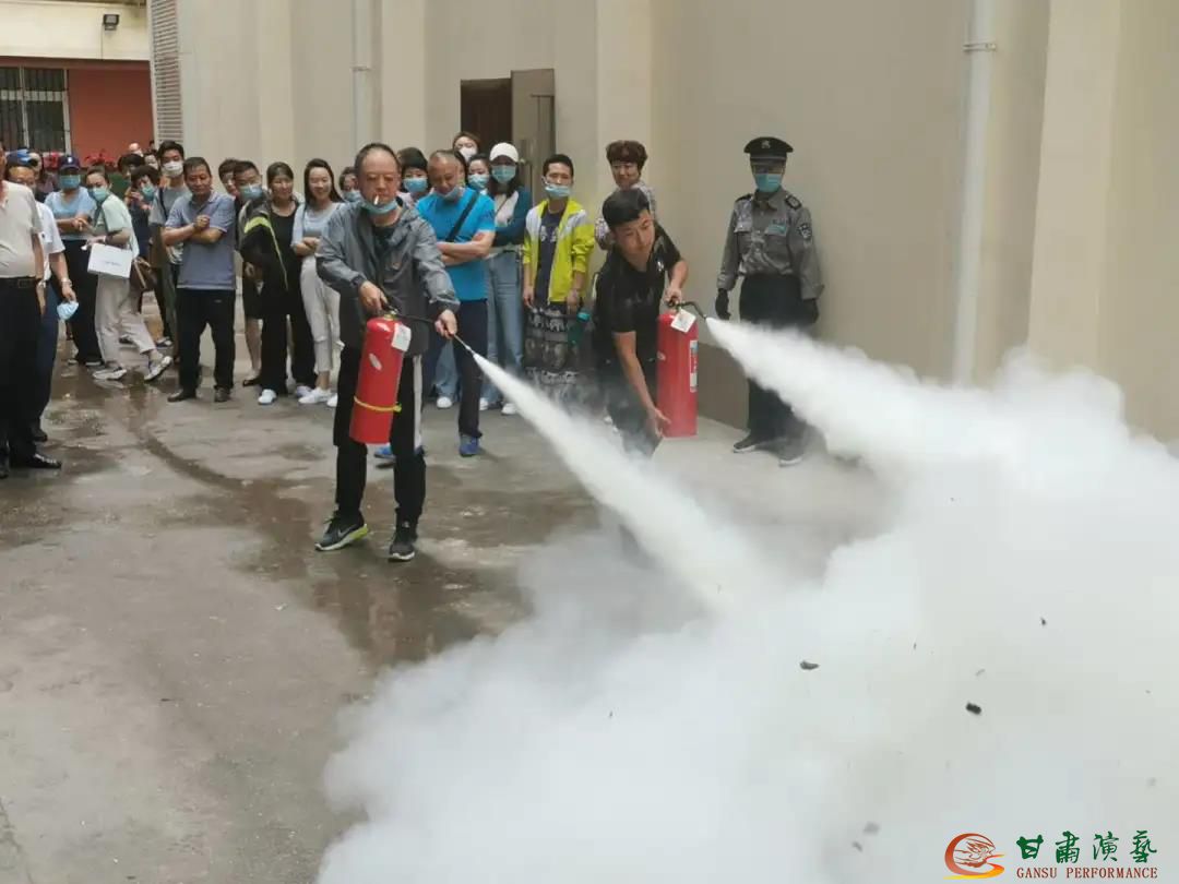 講座結(jié)束后,甘肅省隴劇院全體職工還組織開(kāi)展了消防演練。張玉龍教官為在場(chǎng)人員演示如何使用干粉滅火器,甘肅省隴劇院職工在有專業(yè)指導(dǎo)的情況下,順利使用滅火器撲滅模擬火災(zāi)。