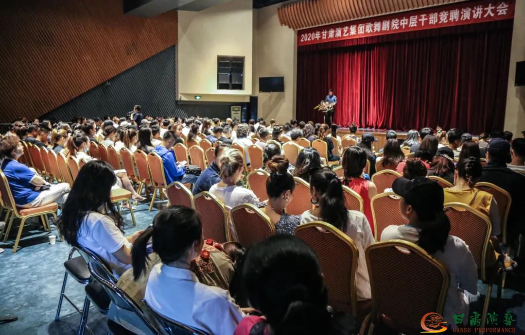按照甘肅演藝集團深化改革“四統(tǒng)一”工作的整體安排,為了貫徹執(zhí)行《甘肅演藝集團直屬各單位中層干部選拔聘用管理辦法》,根據(jù)《甘肅演藝集團歌舞劇院中層干部選拔聘用方案》相關(guān)流程,甘肅演藝集團歌舞劇院于2020年7月3日在花雨小劇場召開了全院中層干部競聘演講大會。集團黨委副書記、監(jiān)事會主席、藝術(shù)總監(jiān)龍富國同志及集團各別部門負(fù)責(zé)人出席競聘會,歌舞劇院領(lǐng)導(dǎo)班子和全院職工200余人參與測評打分。
