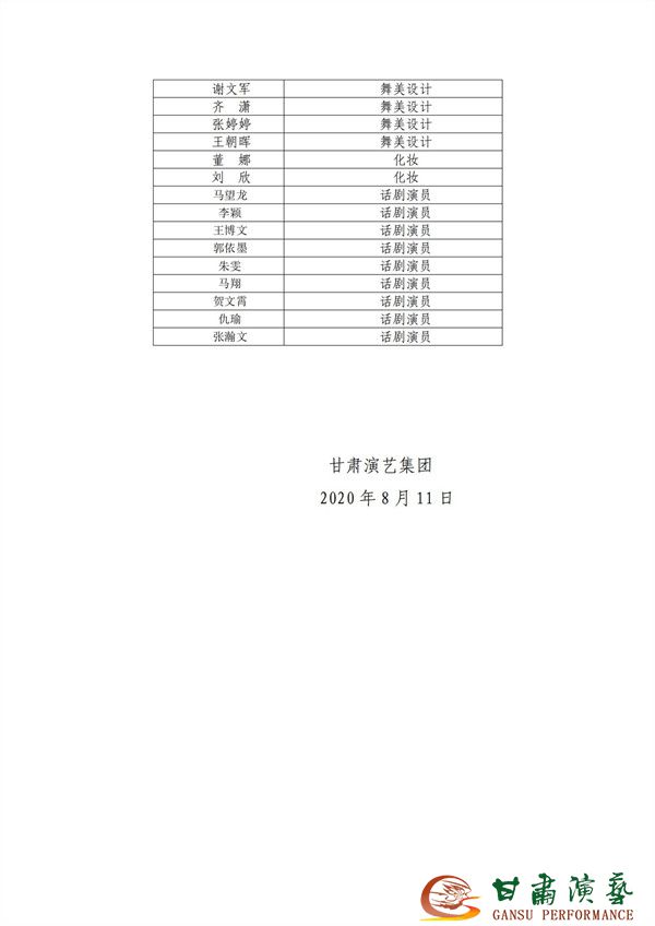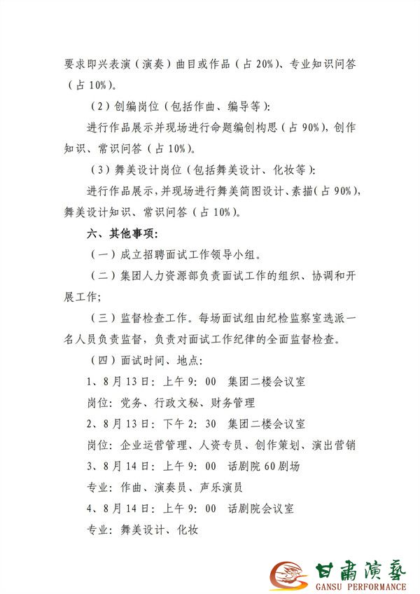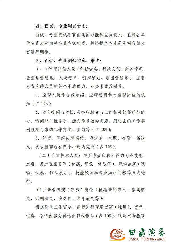 甘肅演藝集團(tuán)關(guān)于公布2020年公開招聘工作中參加面試、專業(yè)測(cè)試人員相關(guān)事宜的通知