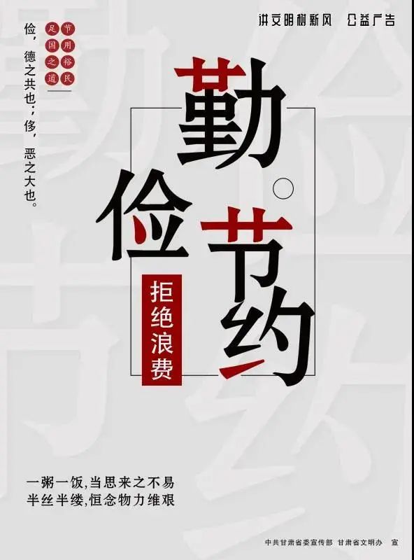 為認(rèn)真學(xué)習(xí)貫徹習(xí)近平總書(shū)記重要指示精神,切實(shí)培養(yǎng)節(jié)約習(xí)慣,在全社會(huì)營(yíng)造浪費(fèi)可恥、節(jié)約為榮的氛圍,近日,省委宣傳部、省文明辦組織設(shè)計(jì)了一批創(chuàng)意海報(bào)和標(biāo)語(yǔ),向全社會(huì)發(fā)布宣傳推廣。