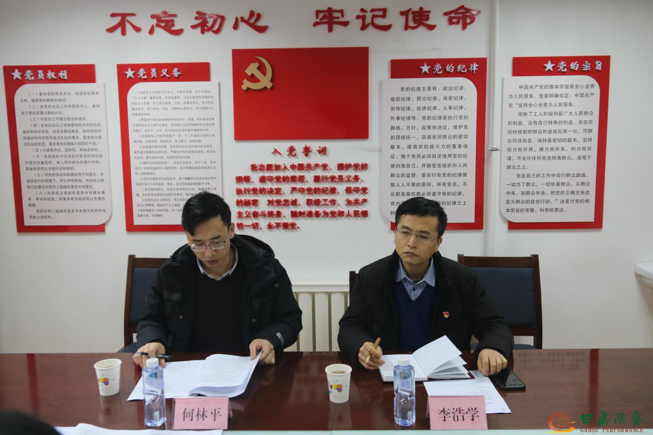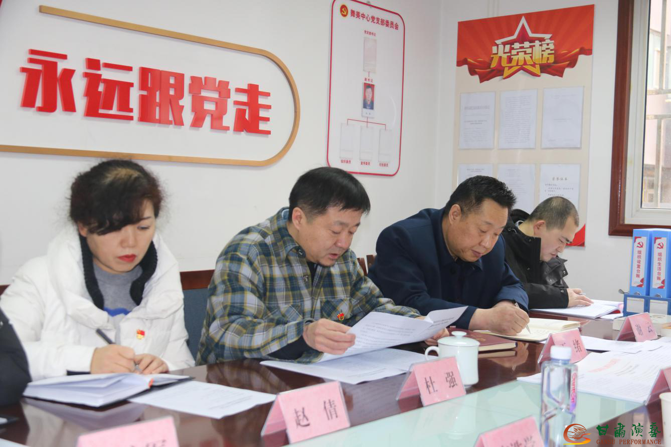 按照甘肅演藝集團黨委安排部署,2021年1月29日上午,甘肅演藝集團舞美中心黨支部召開了2020年度組織生活會和民主評議黨員工作。會議以“認真學習習近平新時代中國特色社會主義思想,貫徹落實習近平總書記對甘肅重要講話和指示精神,把握政治方向、加強政治建設、提高政治能力,真抓實干,擔當作為,厲行節(jié)約,發(fā)揮基層黨組織戰(zhàn)斗堡壘和黨員先鋒模范作用?!睘橹黝}。集團黨委指導組何林平、李浩學兩位同志全程與會指導,會議由支部副書記杜強同志主持,支部全體黨員參加會議、入黨積極分子列席會議。