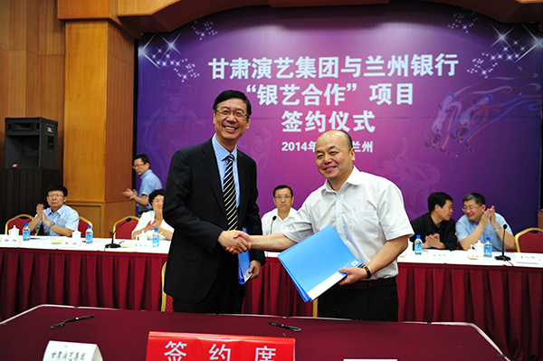 為了推動我省藝術(shù)院團高品質(zhì)的舞臺精品走近百姓,惠及市民,2014年6月26日,甘肅省演藝集團與蘭州銀行“銀藝合作惠民演出年”項目簽約儀式在蘭舉行。該協(xié)議的簽訂,開啟了我省金融企業(yè)與演藝院團圍繞各自的產(chǎn)業(yè)和戰(zhàn)略發(fā)展規(guī)劃,充分發(fā)揮各自的優(yōu)勢,建立戰(zhàn)略合作關(guān)系,進行全方位合作,實現(xiàn)優(yōu)勢互補、共同發(fā)展的先河,探索出了我省銀藝聯(lián)合的新路子。