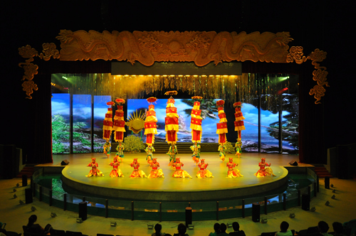 大型雜技歌舞劇《博鰲傳奇》是甘肅省雜技團(tuán)有限責(zé)任公司以海南“鰲”的民間神話故事為素材,投入2000余萬元創(chuàng)作而成的四幕大型雜技歌舞劇。《博鰲傳奇》劇中運用歌舞、雜技、魔術(shù)、武術(shù)等多種藝術(shù)相結(jié)合的藝術(shù)表現(xiàn)手法,特別是巧妙利用雜技高難技巧來展現(xiàn)和詮釋主人公“鰲”,勇敢堅毅、舍生取義的崇高精神。在高科技聲、光、電宏大的舞美布景融于風(fēng)景秀美的萬泉河、龍滾、九曲的山河背景中,通過一波三折動人的故事情節(jié),淋漓盡致地講述了一個關(guān)于海南的民間神話故事。展現(xiàn)出大美大愛、大愛無疆、人間永泰的美好景象。