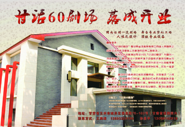 甘話60劇場是甘肅演藝集團(tuán)話劇院繼蘭州人民劇院之后在甘話排練場基礎(chǔ)上改建落成的第二座劇場。1960年甘肅演藝集團(tuán)話劇院(時(shí)為甘肅省話劇團(tuán))有了自己的排練場,而從1953年建團(tuán)至今,甘話已走過60年一甲子的風(fēng)雨歷程。甘話人為了紀(jì)念這兩個(gè)特殊的時(shí)間點(diǎn),將原排練場基礎(chǔ)上改建的劇場命名為“甘話60劇場”,目的就是為了再創(chuàng)甘話舞臺輝煌。作為專為話劇演出而設(shè)計(jì)改建的甘話60劇場,為國內(nèi)一流話劇劇場,其外觀設(shè)計(jì)靈感來源于中國傳統(tǒng)建筑與舞臺元素,巧妙地利用了排練場的結(jié)構(gòu),劇場外觀設(shè)計(jì)以含蓄厚重的青磚紅瓦為基調(diào),輔以現(xiàn)代感的鋼架作襯托,猶似一座夢幻工廠。