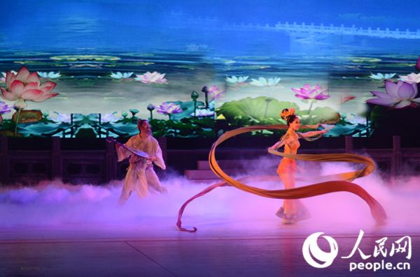 《絲路花雨》通過多變的舞美場景、豐富的舞蹈造型、唯美的舞姿講述了一個發(fā)生在絲綢之路上的凄美動人故事。它不僅融合了中國古典舞、敦煌舞、印度舞、黑巾舞、波斯馬鈴舞等多種形式,還創(chuàng)新性地融入了很多現(xiàn)代舞元素,源于敦煌壁畫的飛天造型、反彈琵琶的優(yōu)美舞姿、變幻無窮的千手觀音場景,讓無論是偏愛傳統(tǒng)文化還是時尚文化的觀眾都沉浸其中。演出結(jié)束后,全場觀眾起立向演員報以熱烈的掌聲。