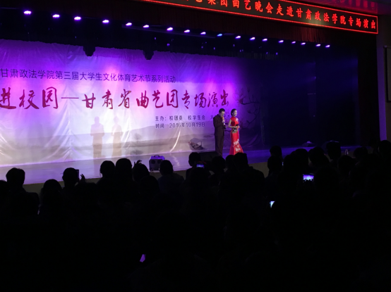 為貫徹落實(shí)甘肅演藝集團(tuán)“高雅藝術(shù)進(jìn)校園”活動(dòng),加強(qiáng)學(xué)生的課外文化活動(dòng),陶冶學(xué)生的情操,弘揚(yáng)甘肅省曲藝文化。甘肅省曲藝團(tuán)于2016年10月19日晚在甘肅政法學(xué)院舉行了曲藝晚會(huì)專場(chǎng)演出。