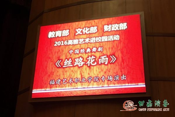 自11月7日始,甘肅省歌舞劇院歷時(shí)37年、出訪40多個(gè)國家、演出2800余場(chǎng)、觀眾超400萬人次的經(jīng)典舞劇《絲路花雨》繼在福建閩江師范高等專科學(xué)校、福建工程學(xué)院、福建醫(yī)科大學(xué)及福建師范大學(xué)分別驚艷亮相并贏取無數(shù)贊譽(yù)之后,又于11月11晚7點(diǎn),在福建藝術(shù)職業(yè)學(xué)院精彩登場(chǎng),收獲了同樣的好評(píng)。至此,在由國家文化部、財(cái)政部及教育部主辦的“2016高雅藝術(shù)進(jìn)校園”高校巡演重大演出活動(dòng)中,《絲路花雨》以精彩迭起的表現(xiàn),如期圓滿完成了福建站5所知名高校的演出任務(wù),為接下來赴廣東、浙江高校的演出打好了美麗的前站。