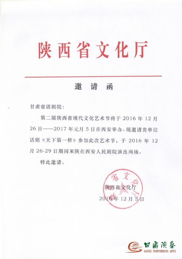 甘肅省話劇院話劇《天下第一橋》劇組收到陜西省文化廳邀請(qǐng),將于12月28日、29日參加第二屆陜西省現(xiàn)代文化藝術(shù)節(jié)的演出。話劇《天下第一橋》是唯一一部?jī)纱芜B續(xù)參加中國(guó)藝術(shù)節(jié)的演出劇目,參加了第十屆中國(guó)藝術(shù)節(jié)和第十一屆中國(guó)藝術(shù)節(jié),兩屆中國(guó)藝術(shù)節(jié)演出之后都受到觀眾的一致好評(píng)。甘肅省話劇院院長(zhǎng)朱衡更憑借在話劇《天下第一橋》中的精湛演技榮獲了第十五屆文華表演獎(jiǎng)。此次赴西安演出一定能給陜西的觀眾帶來更震撼的試聽感受。(圖文由甘肅省話劇院提供)