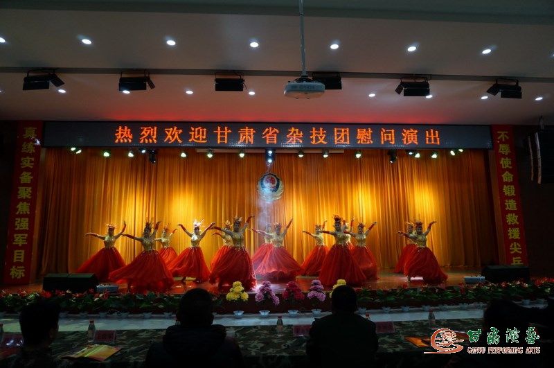 為了響應(yīng)省委宣傳部,省文化廳,省演藝集團號召的文藝演出惠民活動,甘肅省雜技團精心組排了一臺以“我的中國夢,文藝進萬家”為主題的豐富多彩的雜技、魔術(shù)、歌舞節(jié)目,于12月8日在蘭州新區(qū)某武警支隊為駐地官兵們進行了慰問演出。