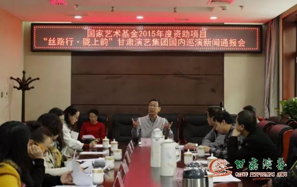 2016年3月4日,為落實(shí)國(guó)家“一帶一路”戰(zhàn)略暢想,促進(jìn)甘肅文化走出去,增加省直文藝院團(tuán)資金來(lái)源渠道。為我省華夏文明傳承創(chuàng)新區(qū)建設(shè)、文化大省建設(shè)、戲劇大省建設(shè)做出更大的努力。甘肅演藝集團(tuán)組織召開了國(guó)家藝術(shù)基金2015年度資助項(xiàng)目“絲路行·隴上韻”國(guó)內(nèi)巡演新聞通報(bào)會(huì)。