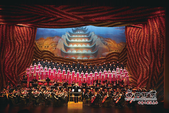 為響應國家“一帶一路”重大戰(zhàn)略,喜迎首屆絲綢之路(敦煌)國際文化博覽會,推動我省文化大省建設,在省委宣傳部的直接領導和省文化廳、省文聯(lián)大力指導支持下,由省地方文化藝術交流學會、省歌劇院、省隴韻合唱團等歷時4年,聯(lián)合組織創(chuàng)排了大型交響合唱《夢回敦煌》。這是我省首部以“一帶一路”為題材、以“大敦煌”文化概念為貫穿主線的大型交響合唱作品,由《序》加《絲路篇》《舞夢篇》《朝圣篇》三大板塊共十三個樂章組成。其中《絲路篇》由《向往敦煌》《絲路印跡》《敦煌的月牙》《兩關懷古》四個樂章組成,體現(xiàn)絲路在歷史長河中對人類的貢獻和敦煌在絲路上的重要位置;《舞夢篇》由《夢回敦煌》《敦煌寶卷》《心靈畫廊》《飛翔的精靈》四個樂章組成,以舞蹈、繪畫、書法等多個角度展現(xiàn)敦煌的人文風采及藝術外延,以“天下大同”的思路詮釋敦煌合作、交流、包容的精神內涵;《朝圣篇》由《聽說的地方》《多彩絲路》《千佛呈祥》《朝圣敦煌》四個樂章組成,表達出敦煌是人類共有的敦煌,是和平與友誼的見證,是開放與交融的歷史記憶,號召人們面對新契機、實現(xiàn)新夢想,努力為“一帶一路”建設作出積極貢獻。