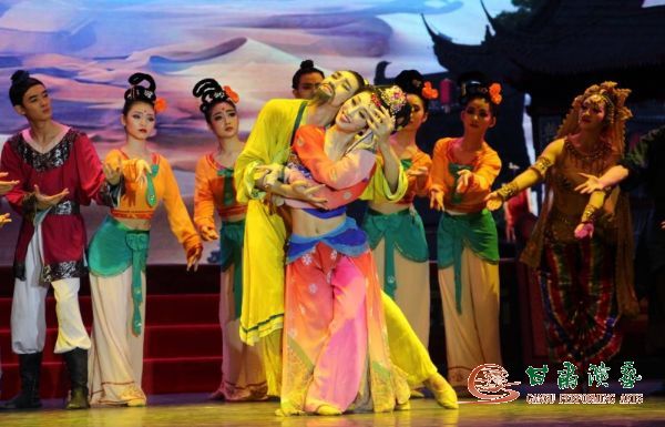 染青城峨眉之靈秀,汲工部武侯之神韻。西南民族大學(xué)坐落于天府之國(guó),位于芙蓉之都的錦繡成都,是民族高等教育鑲嵌在祖國(guó)大西南的一顆明珠,被譽(yù)為“共和國(guó)少數(shù)民族精英的搖籃”。晚7時(shí)許,在輕靈的樂聲中,大幕徐徐拉開,美麗的伎樂天在繚繞的祥云中漸漸現(xiàn)出身影,飛花翩躚,彩帶回旋,飛天凌空,現(xiàn)場(chǎng)頓時(shí)響起熱烈的掌聲,被獨(dú)特的開場(chǎng)舞所震撼。整個(gè)演出過程中,曲折動(dòng)人的故事情節(jié),伴隨著優(yōu)美的音樂旋律和美輪美奐、變幻多姿的舞臺(tái)布景,一次次將現(xiàn)場(chǎng)氣氛推向高潮。