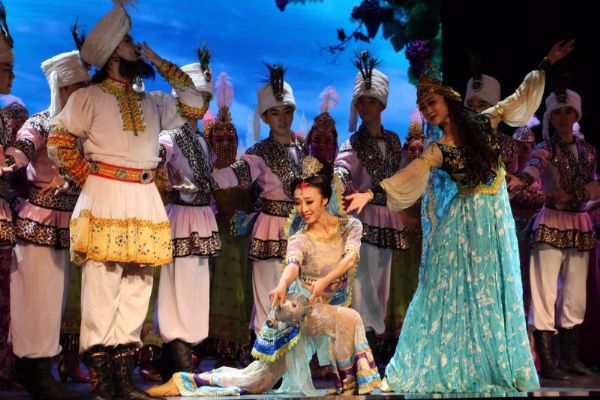 染青城峨眉之靈秀,汲工部武侯之神韻。西南民族大學(xué)坐落于天府之國,位于芙蓉之都的錦繡成都,是民族高等教育鑲嵌在祖國大西南的一顆明珠,被譽(yù)為“共和國少數(shù)民族精英的搖籃”。晚7時(shí)許,在輕靈的樂聲中,大幕徐徐拉開,美麗的伎樂天在繚繞的祥云中漸漸現(xiàn)出身影,飛花翩躚,彩帶回旋,飛天凌空,現(xiàn)場頓時(shí)響起熱烈的掌聲,被獨(dú)特的開場舞所震撼。整個(gè)演出過程中,曲折動(dòng)人的故事情節(jié),伴隨著優(yōu)美的音樂旋律和美輪美奐、變幻多姿的舞臺(tái)布景,一次次將現(xiàn)場氣氛推向高潮。