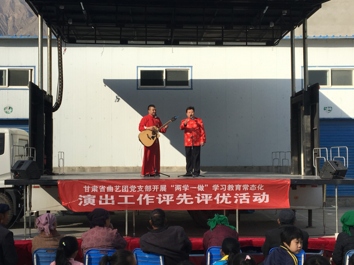 甘肅省曲藝團(tuán)本著“深入生活、扎根人民”的精神,以群眾喜聞樂見、通俗易懂的方式,將黨的十九大精神和脫貧攻堅故事貫穿于相聲、獨角戲、快板等語言類的節(jié)目當(dāng)中,謳歌了黨的光輝歷史,謳歌了改革開放以來取得的巨大成就,展現(xiàn)了十八大之后祖國蒸蒸日上的變化和十九大揭開的祖國新的時代和新的篇章。