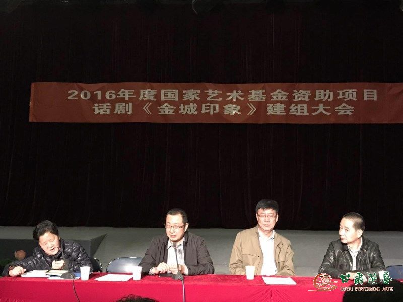 2017年3月22日,國家藝術(shù)基金2016年度大型舞臺劇資助項目——話劇《金城印象》建組大會暨新聞發(fā)布會在甘肅省話劇院舉行。甘肅演藝集團總經(jīng)理張明、甘肅省文化廳藝術(shù)處處長王繁欽、甘肅省話劇院有限公司董事長兼總經(jīng)理朱衡、著名導(dǎo)演查麗芳等有關(guān)領(lǐng)導(dǎo)、專家、劇組主創(chuàng)出席啟動儀式,話劇《金城印象》正式建組開排。
