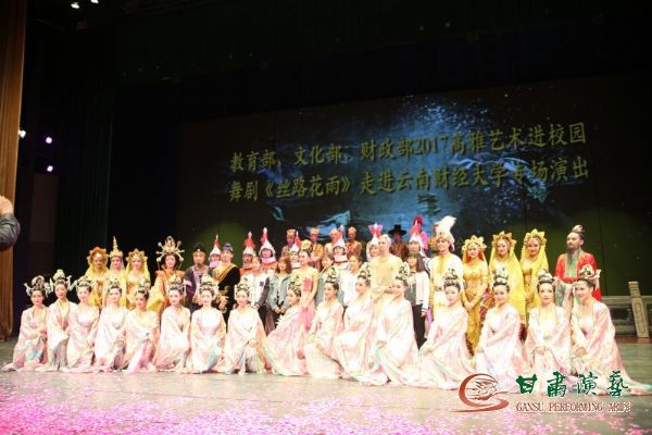 此次,《絲路花雨》在云南財經(jīng)大學(xué)的震撼上演同時也作為在國家文化部、財政部及教育部隆重主辦的“2017高雅藝術(shù)進校園”南京、蘇州、曲靖、昆明四地演出的告別之演,在收獲了一路高校師生的贊譽好評中為甘肅省歌舞劇院翻開了全新的輝煌篇章。