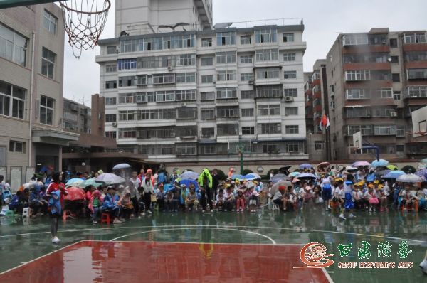 在團(tuán)結(jié)新村小學(xué)演出時(shí),由于下雨,演出時(shí)間不得不推遲,雨漸停后,演出正式開始,隨著《茉莉花》音樂(lè)響起,瞬間吸引住了老師同學(xué)們的注意力,之后,該校師生還同臺(tái)表演了合唱和口風(fēng)琴齊奏,他們用童心演繹快樂(lè),展現(xiàn)了孩子們的自信和風(fēng)采。在節(jié)目進(jìn)行中,天空又飄起雨,但校領(lǐng)導(dǎo)和師生沒(méi)有退場(chǎng),依然撐傘在雨中觀看演出,大雨并沒(méi)有影響同學(xué)們的熱情,觀眾席中不時(shí)爆發(fā)出熱烈的掌聲。一位老師說(shuō):“這是她第一次看到這樣的場(chǎng)景,也是第一次近距離現(xiàn)場(chǎng)觀看這么精彩的節(jié)目,真是讓人大飽眼福!”