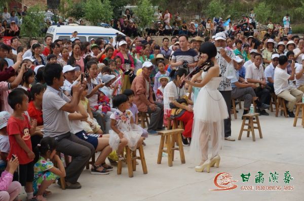 2017年7月30日—8月5日,甘肅省歌劇院在甘谷縣進(jìn)行了2017年政府購買公益性演出。沒有設(shè)施齊全的劇場(chǎng),鄉(xiāng)村簡樸的天然場(chǎng)地卻別有風(fēng)韻;沒有富麗堂皇的舞臺(tái),但臨時(shí)搭建的簡易臺(tái)子,卻把高雅藝術(shù)送到了群眾家門口,將歡樂幸福播撒在鄉(xiāng)間田野。省歌劇院來到大像山鎮(zhèn)、新興鎮(zhèn)、六峰鎮(zhèn)、武家河鎮(zhèn)、謝家灣鄉(xiāng)等五個(gè)鄉(xiāng)鎮(zhèn)慰問演出。連日來,演員們白天頭頂烈日,晚上披星戴月,長途跋涉,給當(dāng)?shù)厝罕娊舆B送去了8場(chǎng)共100多個(gè)精彩紛呈、難得一見的文藝節(jié)目。時(shí)值盛夏,雖然艷陽高照,熱浪撲面,但這絲毫沒有阻擋農(nóng)民群眾火熱的心情。聽說省歌劇院來鄉(xiāng)下慰問演出,群眾像過節(jié)一般高興,奔走相告,用他們發(fā)自內(nèi)心的真誠和熱情迎接遠(yuǎn)方的客人。每場(chǎng)演出,十里八鄉(xiāng)的鄉(xiāng)親們都扶老攜幼,老早趕來,將演出現(xiàn)場(chǎng)圍得水泄不通。
