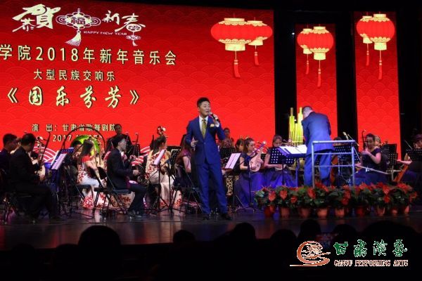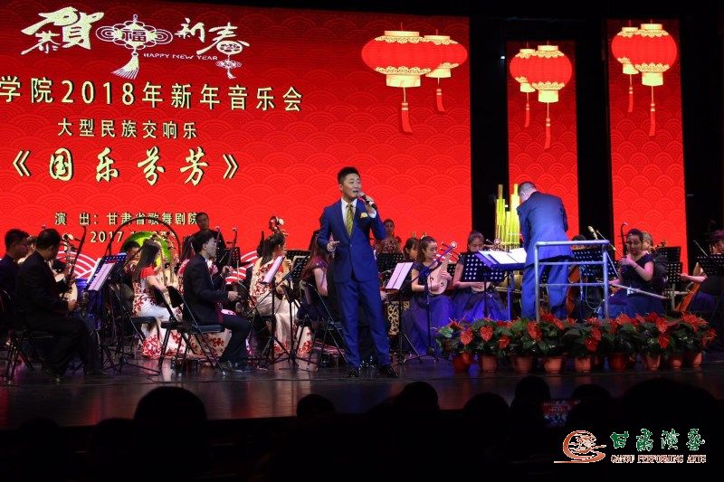 絲竹悠揚(yáng)辭舊歲,歌聲歡暢迎新春!2017即將成為永久的燦爛記憶,2018正滿含金色希望意氣奮發(fā)地走來,甘肅省歌舞劇院民族交響樂團(tuán)不僅以一場(chǎng)令人回味無窮的音樂盛會(huì)《國(guó)樂芬芳》為河西學(xué)院廣大師生帶去了不盡快樂,營(yíng)造出濃濃的新年氛圍,而且也為自身一年來以辛勤工作換來的良多收獲做出了歡騰的祝賀、為新的一年里再續(xù)全新藝術(shù)華章迎來了一個(gè)盎然開端?。▓D文由甘肅省歌舞劇院提供)