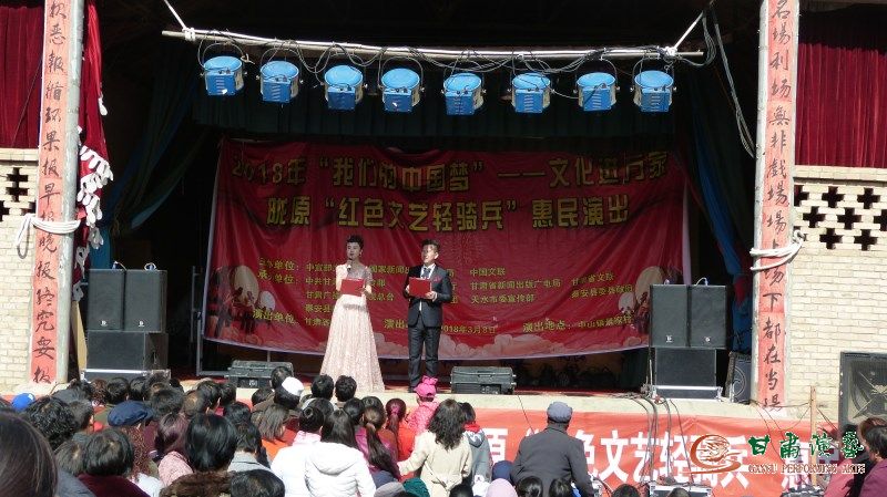 借力3月7日在天水市秦安縣蓮花鎮(zhèn)袁山村盛大啟幕演出及湫果村成功演出的強(qiáng)勁東風(fēng),3月8日上午10點(diǎn)30分、下午3點(diǎn),心懷縷縷激情的甘肅省歌舞劇院2018年“我們的中國(guó)夢(mèng)——文化進(jìn)千萬(wàn)家”活動(dòng)暨隴原“紅色文藝輕騎兵”惠民演出小分隊(duì)全體演職人員,再次充分發(fā)揚(yáng)省級(jí)模范藝術(shù)院團(tuán)不怕苦不怕累的優(yōu)良作風(fēng),以高度責(zé)任意識(shí)和敬業(yè)精神,克服山路遙遠(yuǎn)崎嶇、演出場(chǎng)地條件極為有限等眾多現(xiàn)實(shí)困難,相繼于秦安縣中山鎮(zhèn)蘇峽村、景家村鄉(xiāng)村舞臺(tái),將兩場(chǎng)主題積極向上、風(fēng)格新穎多樣、接地氣、貼民心的歌、樂(lè)、舞綜合文藝節(jié)目完美呈現(xiàn)給了兩村共計(jì)1500余名質(zhì)樸熱情的老百姓,深受他們歡迎和贊譽(yù),良好助推了該院本次秦安大地惠民演出的喜悅邁進(jìn)。