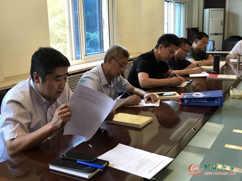根據(jù)省委宣傳部、省文化廳、甘肅演藝集團(tuán)相關(guān)要求, 7月5日,甘肅省歌舞劇院組織院黨總支中心組學(xué)習(xí),在院黨總支成員及各黨支部書(shū)記、支委參加學(xué)習(xí)。黨總支書(shū)記楊亦兵主持并傳達(dá)了《甘肅演藝集團(tuán)黨委深入開(kāi)展“轉(zhuǎn)變作風(fēng)改善發(fā)展環(huán)境建設(shè)年”活動(dòng)工作方案》《甘肅省作風(fēng)建設(shè)年活動(dòng)督促檢查內(nèi)容》《關(guān)于印發(fā)甘肅演藝集團(tuán)作風(fēng)建設(shè)年活動(dòng)領(lǐng)導(dǎo)小組辦公室組成人員及工作職責(zé)的通知》《關(guān)于轉(zhuǎn)發(fā)“中共甘肅省委宣傳部關(guān)于認(rèn)真組織學(xué)習(xí)習(xí)近平新時(shí)代中國(guó)特色社會(huì)主義思想三十講”的通知》《關(guān)于印發(fā)“甘肅演藝集團(tuán)黨委發(fā)展黨員工作細(xì)則”的通知》《中共甘肅省文化廳黨組關(guān)于印發(fā)“廳直文化系統(tǒng)黨支部建設(shè)標(biāo)準(zhǔn)化工作推進(jìn)方案”的通知》《關(guān)于印發(fā)“甘肅演藝集團(tuán)黨委黨支部建設(shè)標(biāo)準(zhǔn)化工作推進(jìn)方案”的通知》以及《全省基層黨建工作重點(diǎn)任務(wù)推進(jìn)會(huì)暨黨支部建設(shè)標(biāo)準(zhǔn)化工作部署啟動(dòng)會(huì)主要精神傳達(dá)提綱》文件精神。