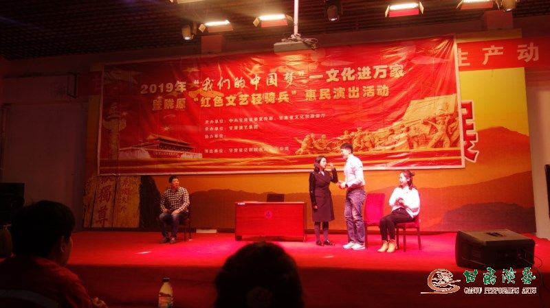 由甘肅省委宣傳部、甘肅省文化和旅游廳主辦、甘肅演藝集團(tuán)承辦的2019“我們的中國(guó)夢(mèng)”-----文化進(jìn)萬家暨隴原“紅色文藝輕騎兵”惠民演出繼續(xù)領(lǐng)跑,甘肅省話劇院隴原“紅色文藝輕騎兵”演出小分隊(duì)2月17日赴七里河區(qū)秀川街道銀灘花園為當(dāng)?shù)氐陌傩赵谡率迩八蜕狭艘粓?chǎng)精彩的文化“視聽盛宴”。