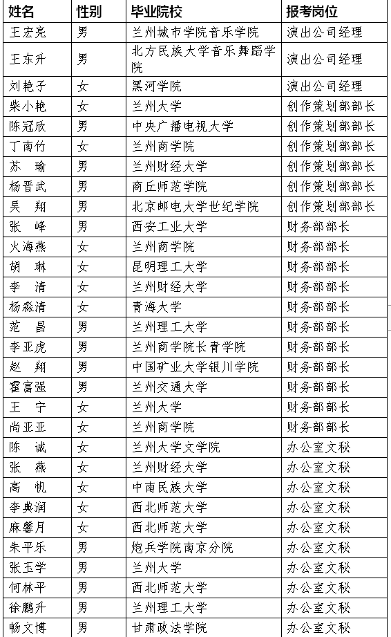 一、甘肅演藝集團2019年公開招聘工作人員資格初審結(jié)果一覽表