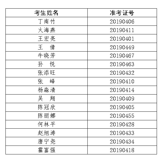 一、面試安排 請參加面試的考生,持本人有效居民身份證件及筆試考試準(zhǔn)考證原件,于2019年4月9日下午2:00在甘肅省人力資源市場四樓424室報到、抽簽,2:30開始面試。未在規(guī)定時間內(nèi)到場者,視為自動放棄。 二、參加面試人員一覽表(按筆畫排序)