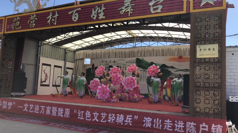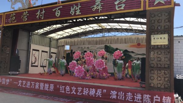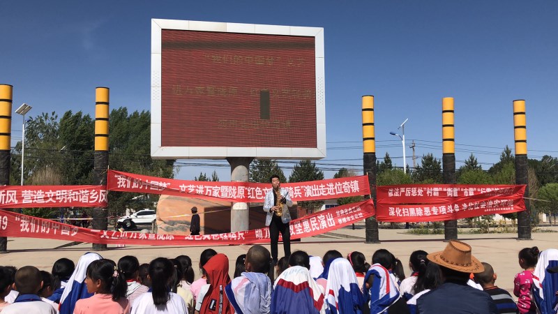 2019年5月22日,省曲藝團(tuán)小分隊(duì)繼續(xù)趕赴山丹縣位奇鎮(zhèn)位奇村。烈日當(dāng)頭,省曲藝團(tuán)小分隊(duì)的演職人員們來到現(xiàn)場后立即布置舞臺,汗如雨下的演員們絲毫沒有停頓準(zhǔn)時在早上10點(diǎn)響起開場音樂。