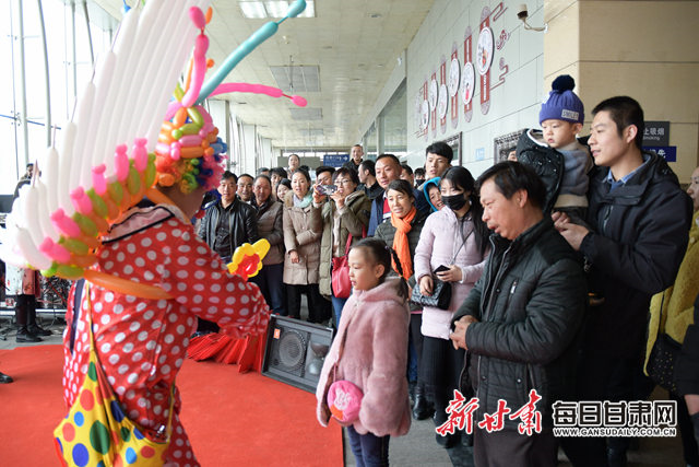 今天下午,由中共甘肅省委宣傳部主辦,甘肅省演藝集團和中國鐵路蘭州局集團公司協(xié)辦,甘肅省曲藝團有限責任公司承辦的以“平安春運、有序春運、溫馨春運,讓旅客體驗更美好”主題快閃活動在蘭州火車站第五候車廳上演。